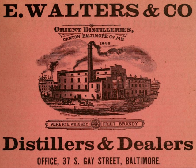 As I’ve said, this style of fire-heated copper pot still whiskey is not often attributed to Pennsylvanian distillers. The reason behind this confusion is that by the late 1800s, most of the whiskey manufactured in Somerset County’s distilleries was being bottled by Edwin Walters of E. Walters & Co. (previously W.T. Walters & Co.) in Maryland. Edwin Walters had also been owner of the Canton Distillery in Canton, Maryland, which was famous for its “Orient Pure Rye Whiskey.” He had decades of experience selling rye whiskey, and even before buying Somerset County’s distilleries outright, he had established exclusivity rights from the previous owners of those properties. By the 1890s, Walters began purchasing several of his favored distillery sites. He wasn’t the only liquor businessman to invest in Somerset’s distilleries- John Topper was another- but Walters’ business being “out-of-state” was unusual. Pennsylvanians were usually not keen on carpetbaggers, but Walters was unique in that he had spent years building those relationships. The Somerset Herald quoted Edwin in May 1890 as saying: