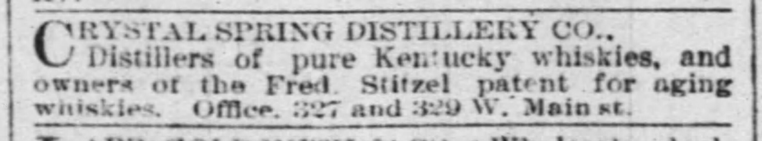 In December 1889, the English syndicate buying distilleries through their representative, Nathan Hofheimer, had acquired 17 Kentucky distilleries. Among them were the Anderson and Nelson Distilleries (Anderson, Nelson, Laval/Crystal Springs, Beargrass Creek Distillery/Kentucky Distillery Co., the Pepper Distillery in Franklin Couty, the E.C. Berry Distillery in Davies Couty) as well as the Patterson and Atherton Distilleries of Louisville, the Ripy Distillery of Anderson County, the Old Lewis Distillery and the Megibben & Bramble Distillery- both in Lair, Ky, T.J. Megibben’s distillery in Cynthiana, among others…The consolidations of distilleries in Kentucky was already well underway. Frederick Stitzel at the Crystal Springs Distillery had a new boss. Again.