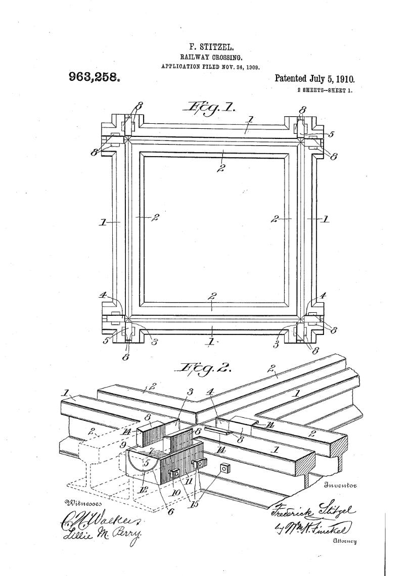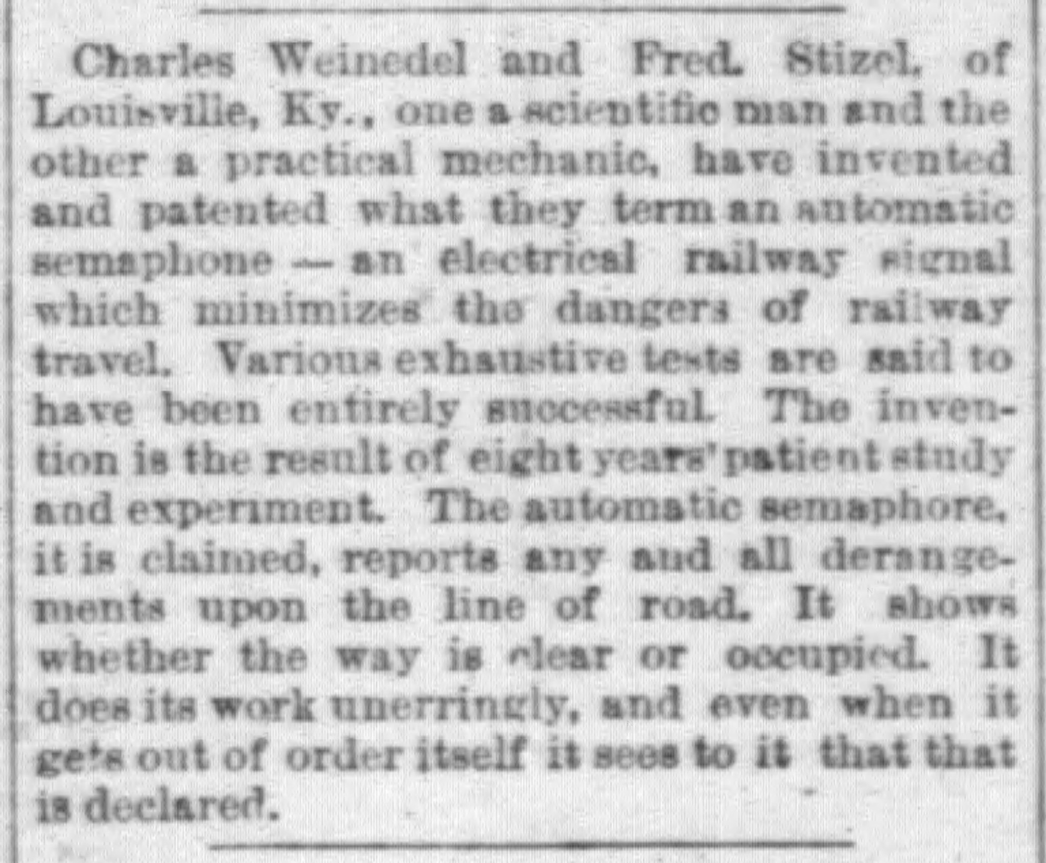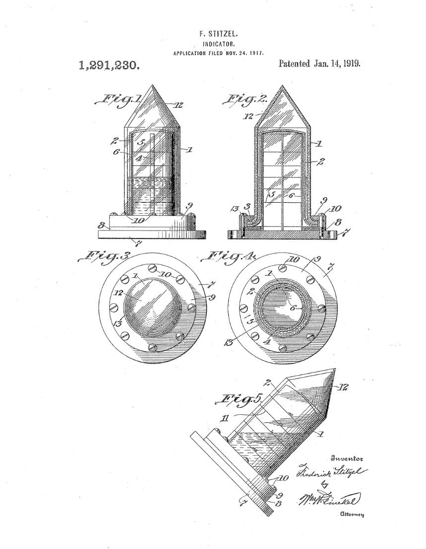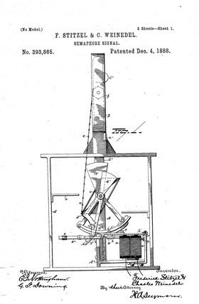 Arguably Frederick’s most impactful invention was his railroad semaphore. The patent for his invention was approved on June 29, 1886, just over a year after his scalding accident, but Frederick (and his partner, Charles Weinedel) had been tinkering with the concept for over 8 years. A semaphore is any apparatus used for signaling over long distances (flags, lights, fire, beacons, etc.). Frederick Stitzel designed a semaphore that could be installed by railroad companies along their tracks, helping engine drivers communicate while they’re still far enough away from one another to safely navigate the rails. On July 9, 1887, Frederick and his fellow patent holders incorporated the American Semophore Company with a capitalization of a million dollars. The invention of the railroad semaphore has been improved over time, but it vastly improved railroad safety- not just for passengers, but also for every bit of cargo that businessmen shipped by rail. Whiskey enthusiasts may remember Fred Stitzel for his barrel racks, but the nation remembered him for his semaphore. He would continue to invent for the rest of his life, adding dozens more patents to his list of personal achievements.