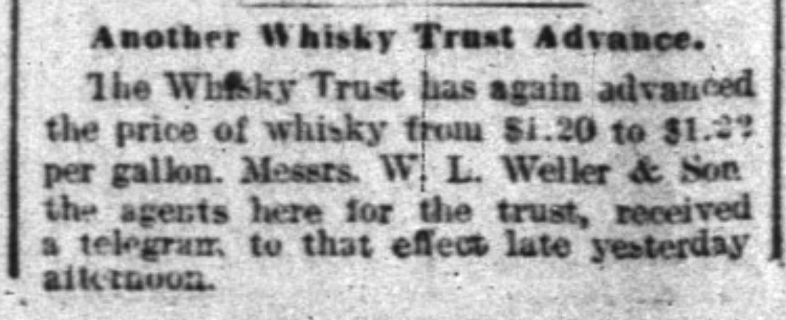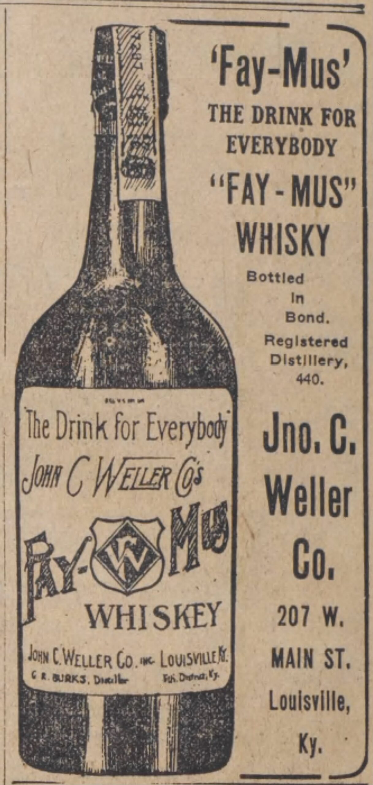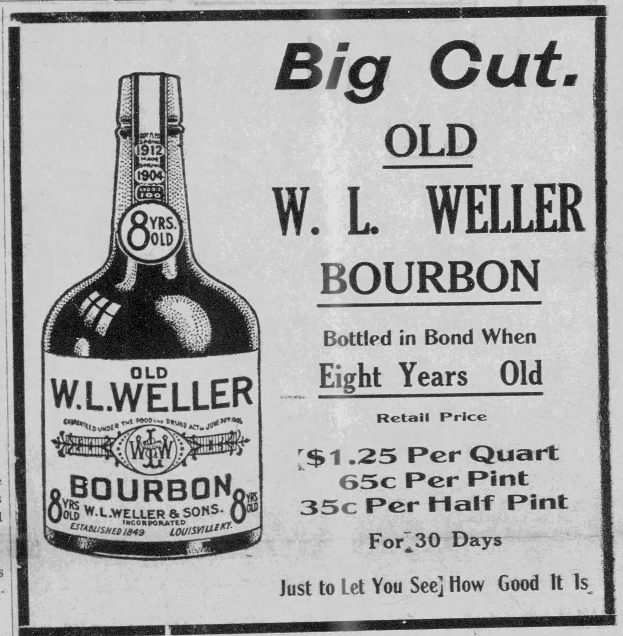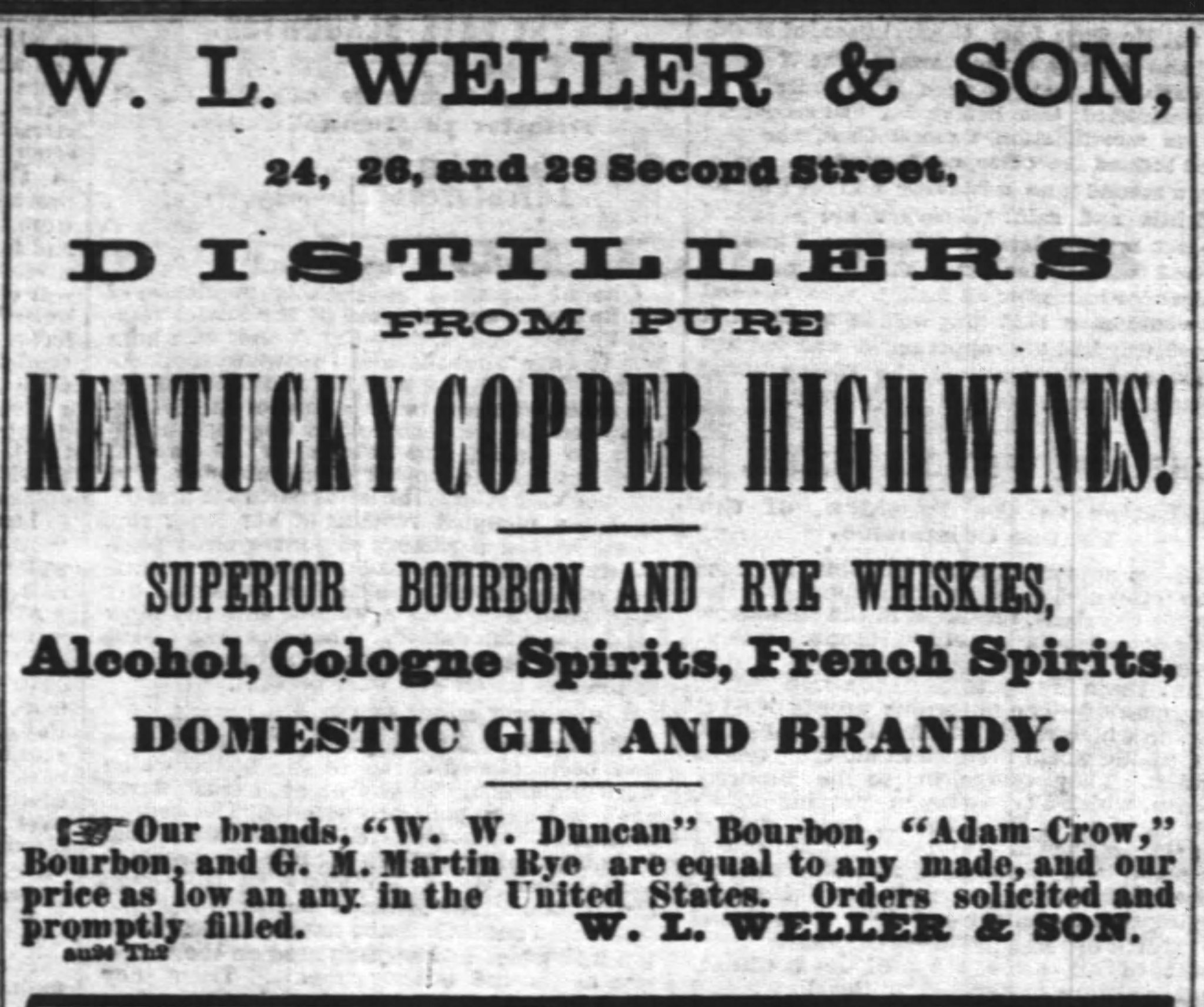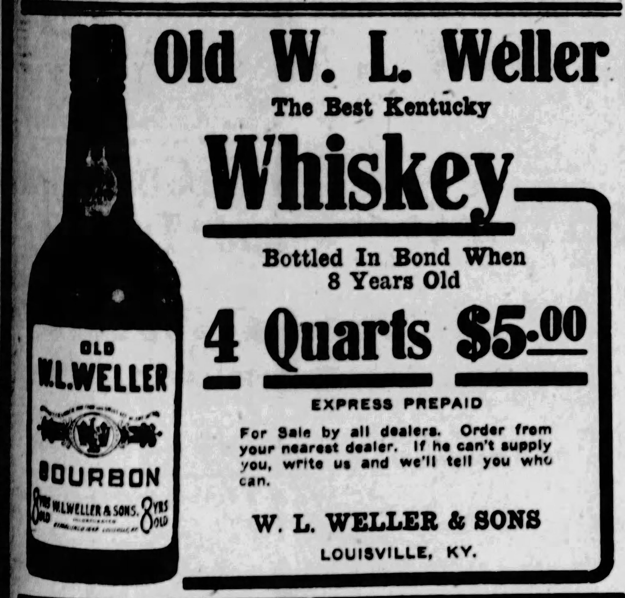 Thankfully, the company’s assets were worth more than their liabilities, so they were able to pull through relatively unscathed after selling off a large chunk of whiskey, equipment, and real estate. William’s son and George’s much younger brother, John Charles Weller (now entering his 20s), joined the firm. W.L. Weller & Son became W.L. Weller & Sons.